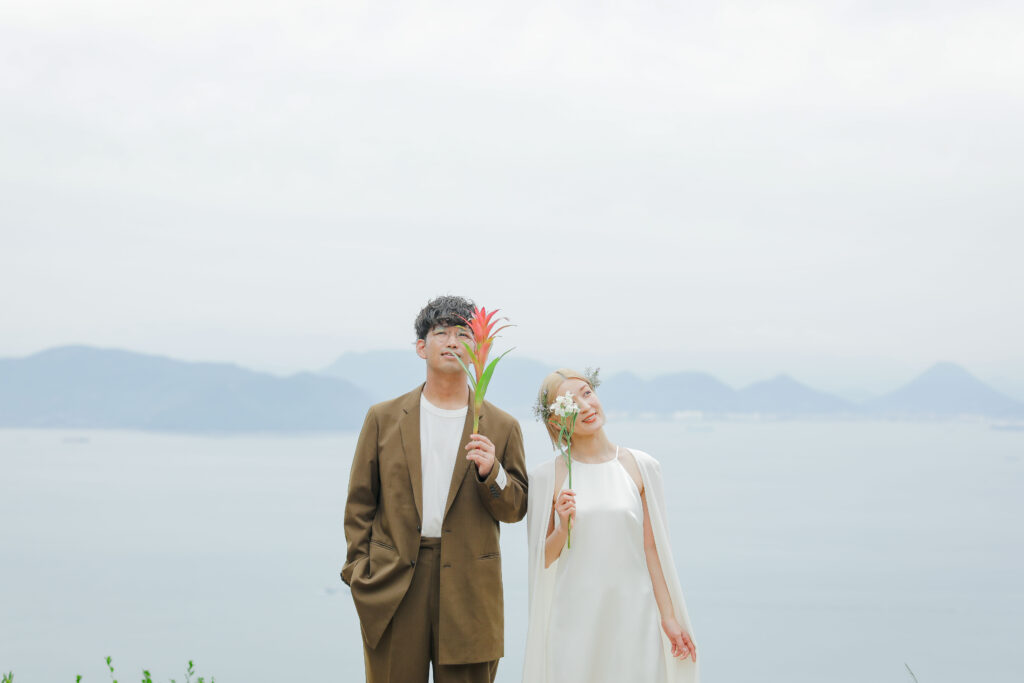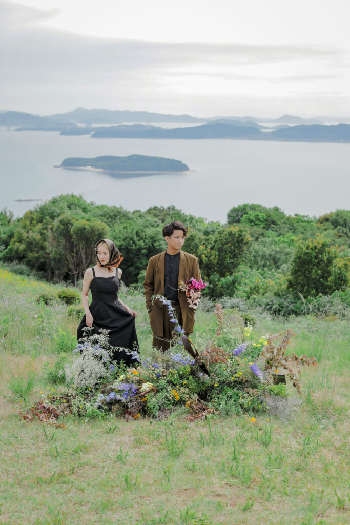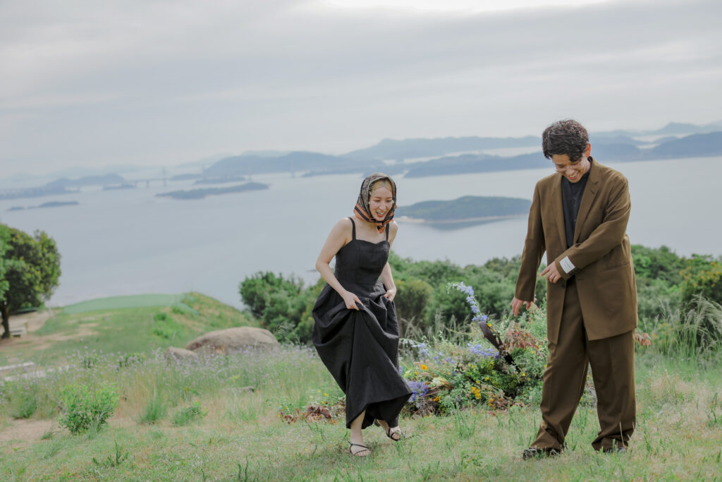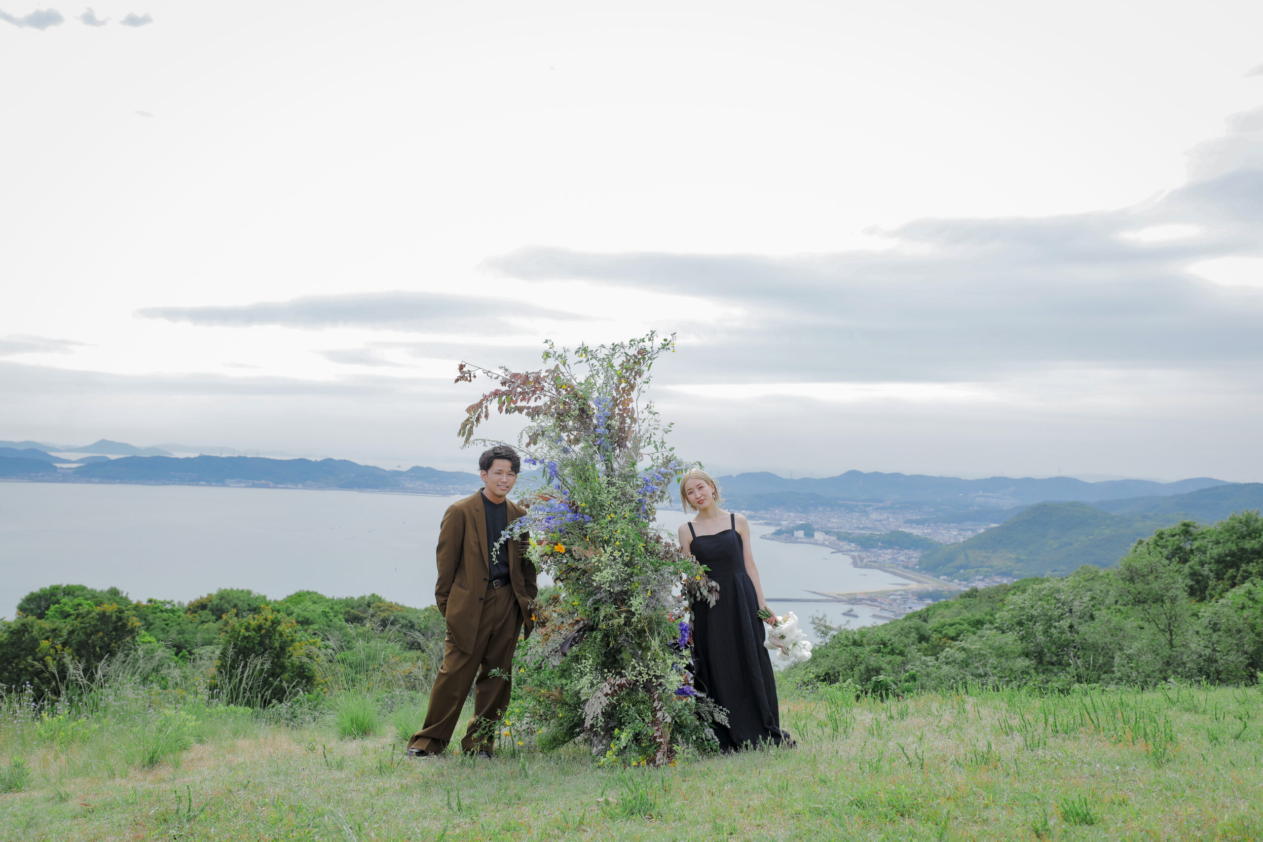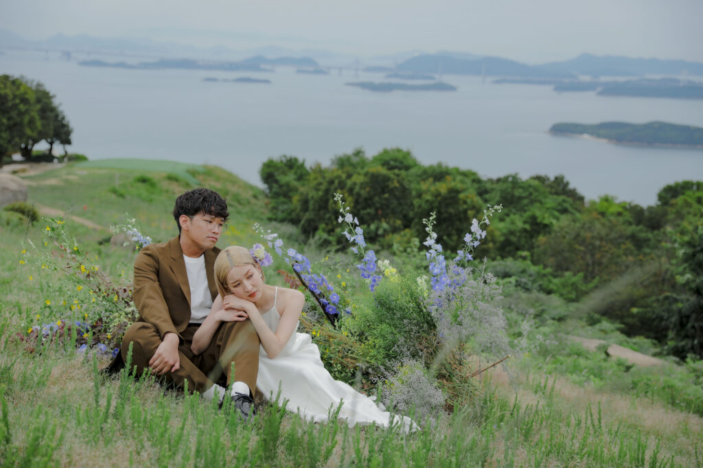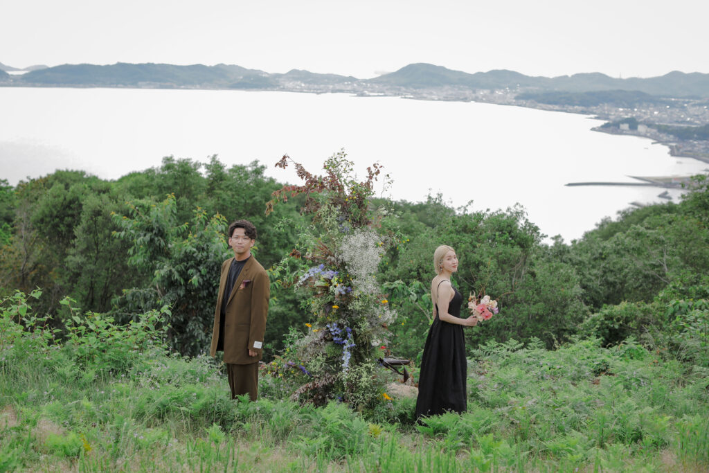 岡山県にある王子ヶ岳は、雄大な瀬戸内海を一望できる絶景の地。おふたりにとって思い出の場所であるこの場所で、新緑がまぶしい5月、特別なフォトウェディングが叶いました。