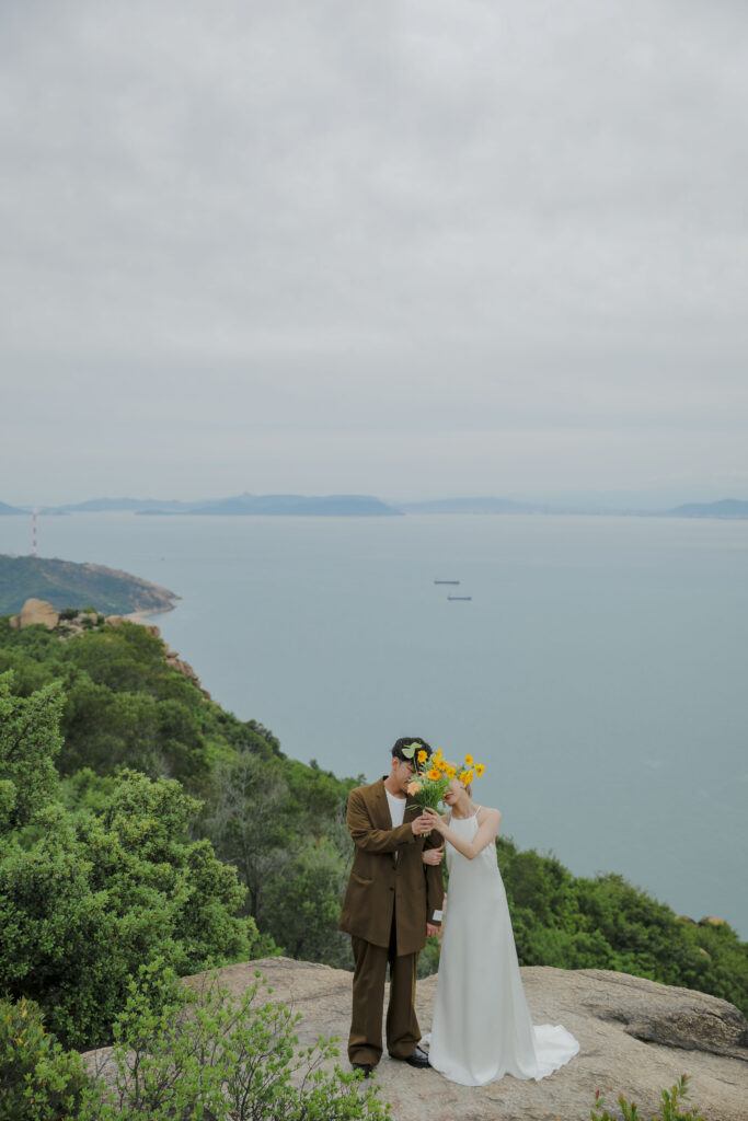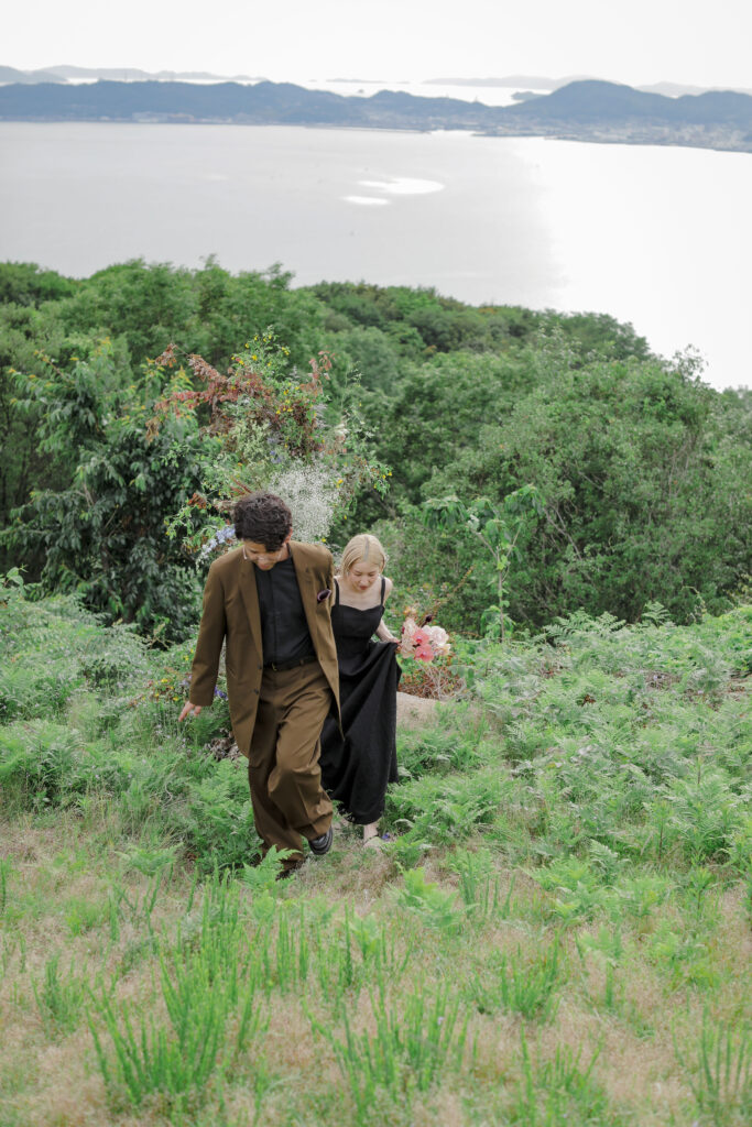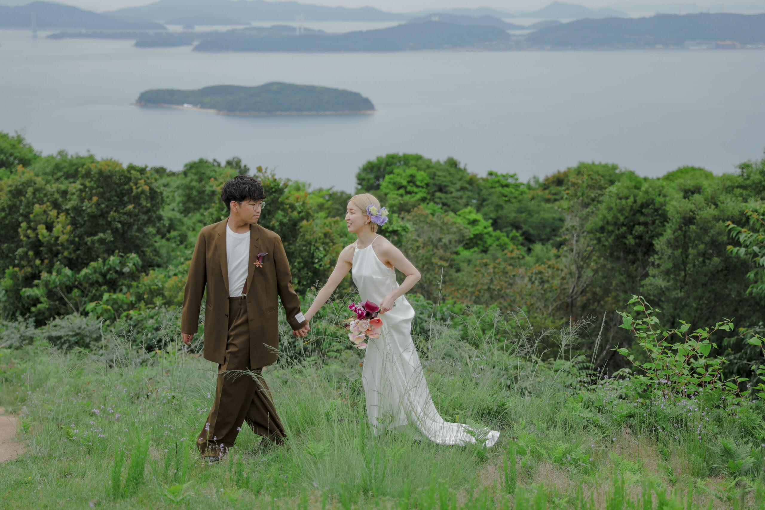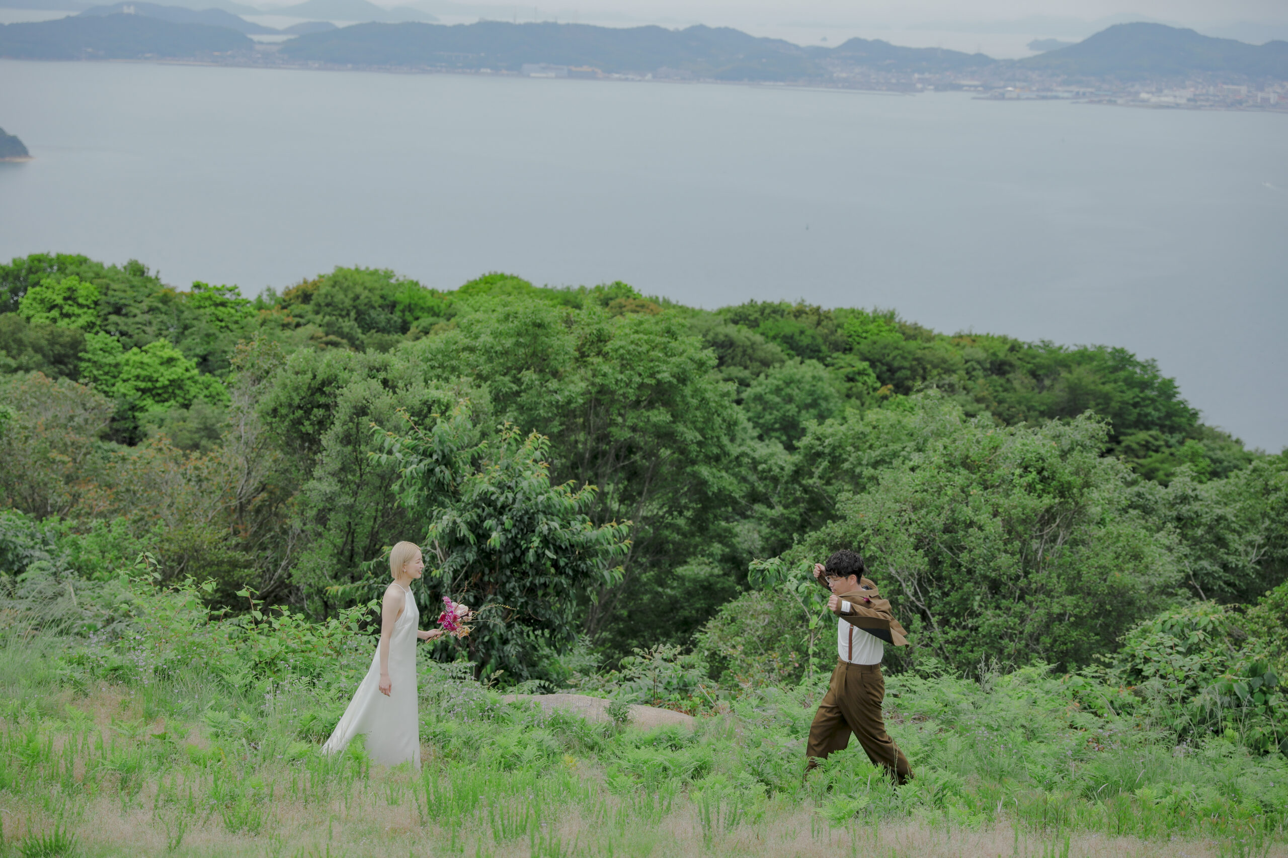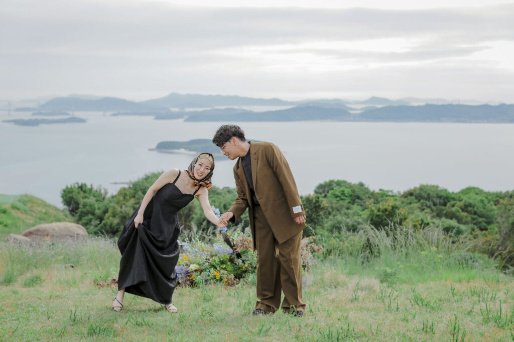 岡山県にある王子ヶ岳は、雄大な瀬戸内海を一望できる絶景の地。おふたりにとって思い出の場所であるこの場所で、新緑がまぶしい5月、特別なフォトウェディングが叶いました。