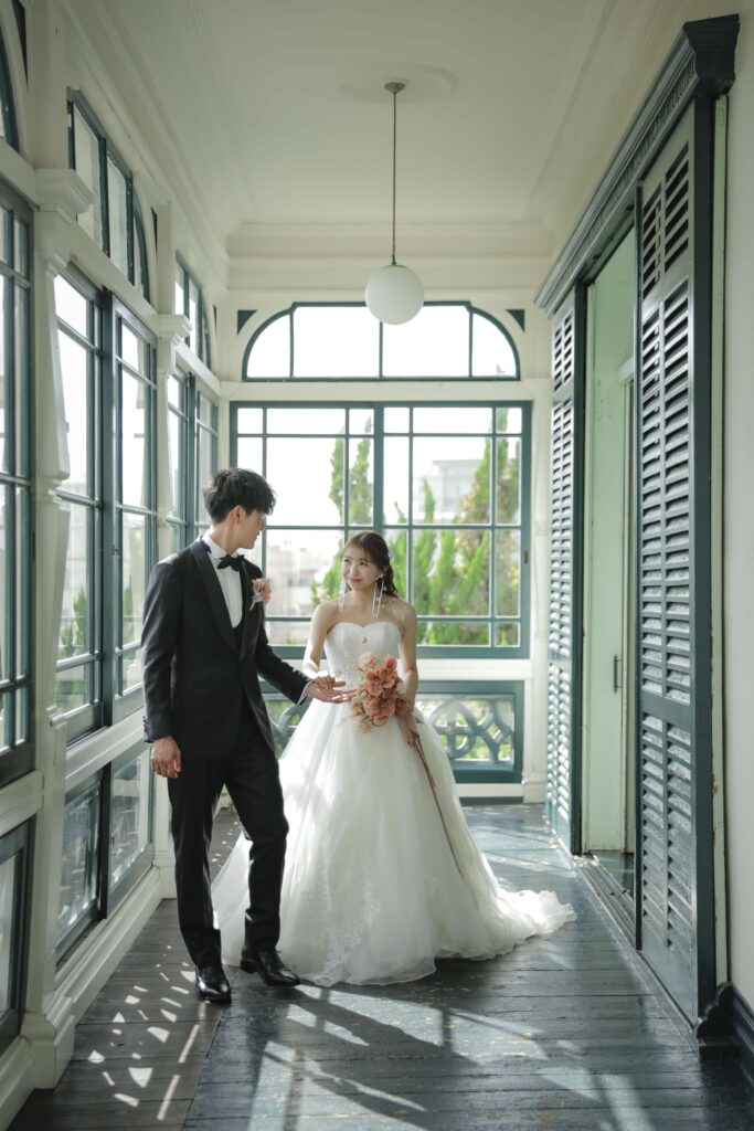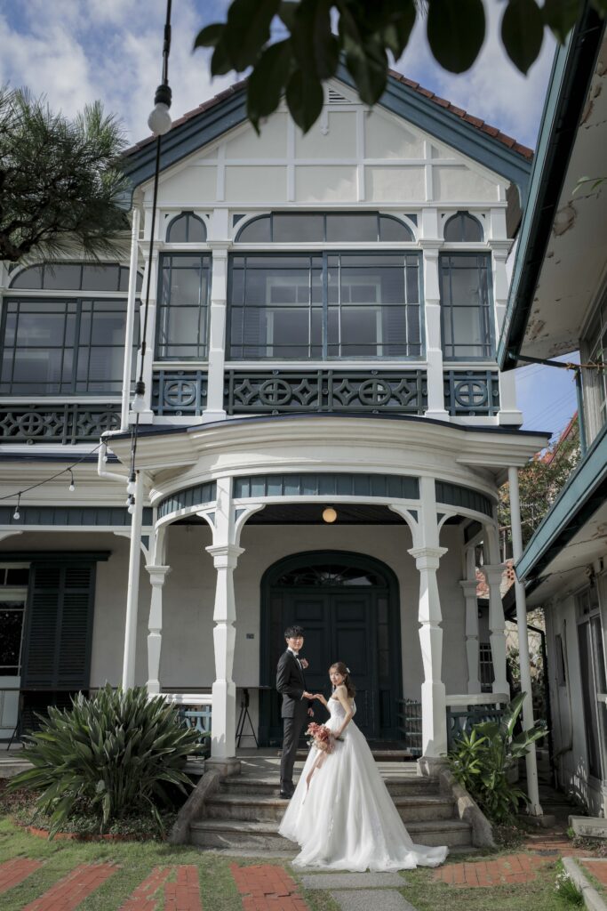 これから前撮り・フォトウェディングを控えるプレ花嫁さんへ 神戸でのロケーションフォトや前撮りを検討されているなら、ぜひ旧グッゲンハイム邸を候補に入れてみてください。 季節ごとに表情を変えるこの場所ですが、特に「秋冬」は空気が澄んでいて、ドレスがより一層美しく映える季節です。