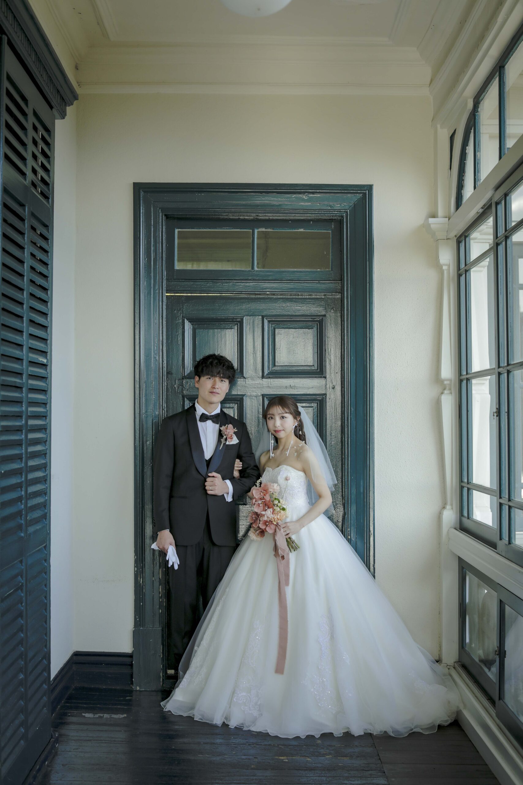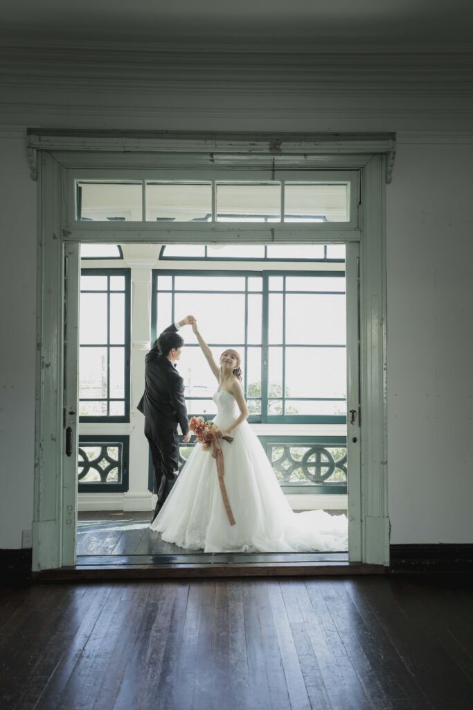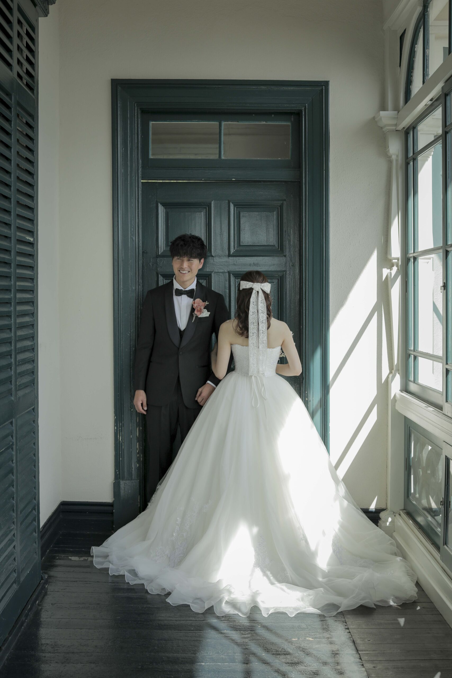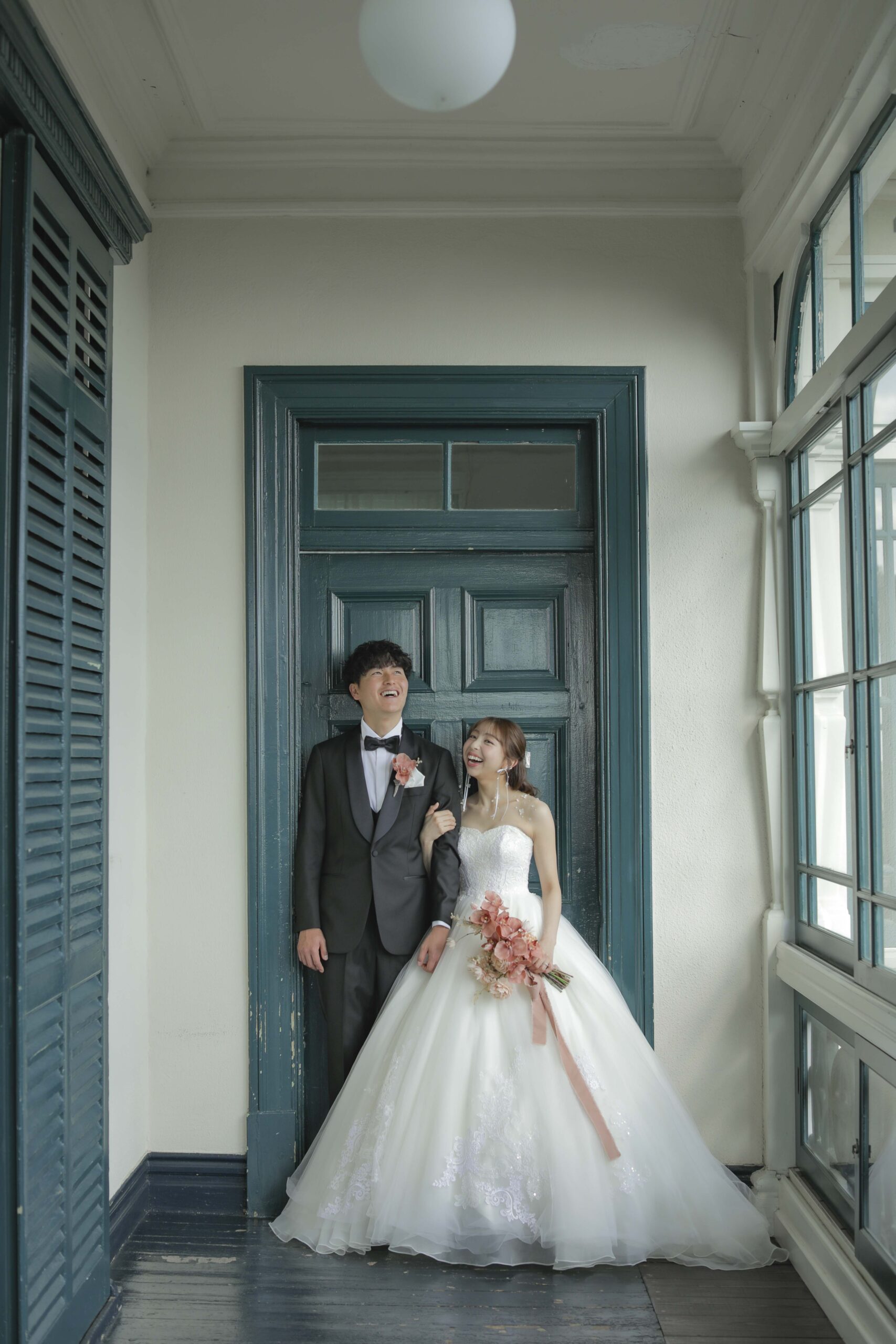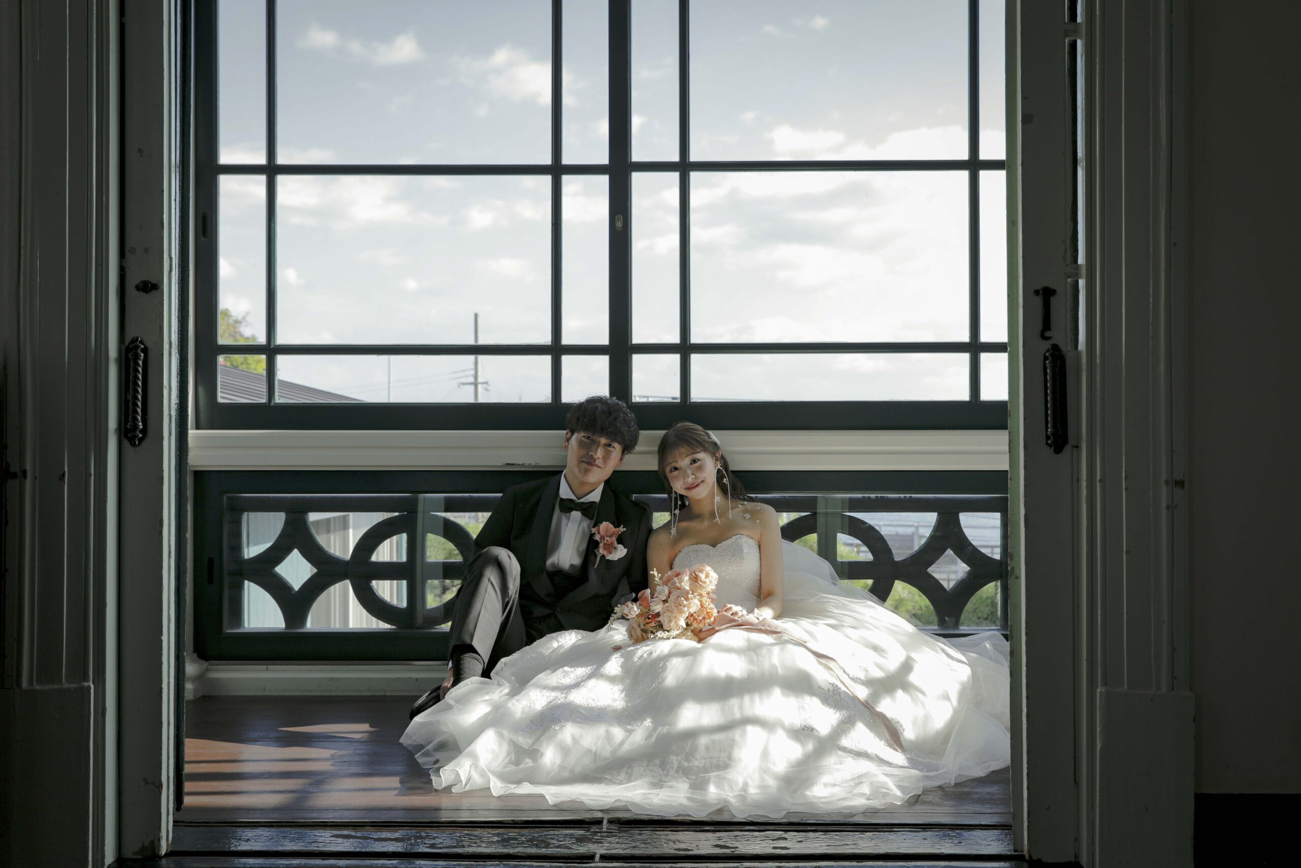 秋の光に包まれた最高のロケーション 旧グッゲンハイム邸を選んだ最大の理由は、どこを切り取っても絵になる圧倒的なロケーションの良さです。ミントグリーンの外観や、木の温もりを感じるクラシックな内装。特に秋の柔らかな陽光が差し込む窓辺は、映画のワンシーンのようなドラマチックな雰囲気を演出してくれました。