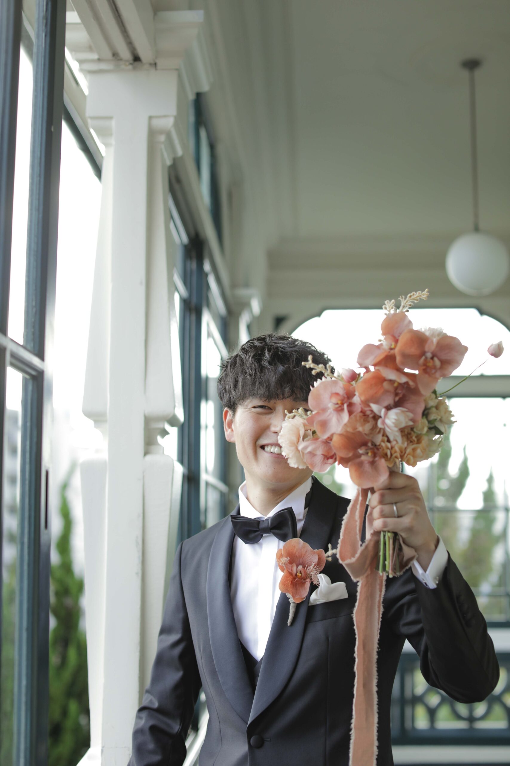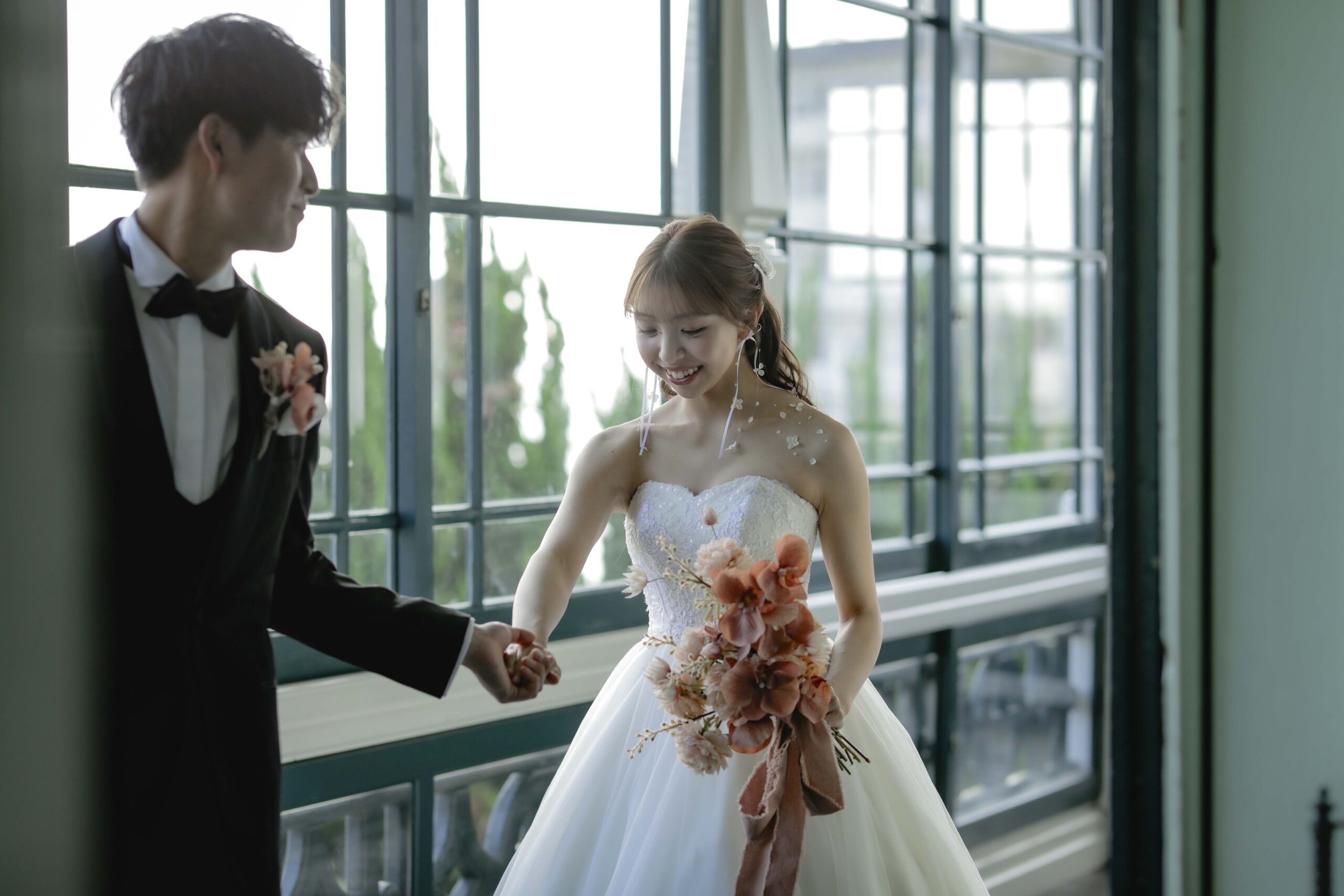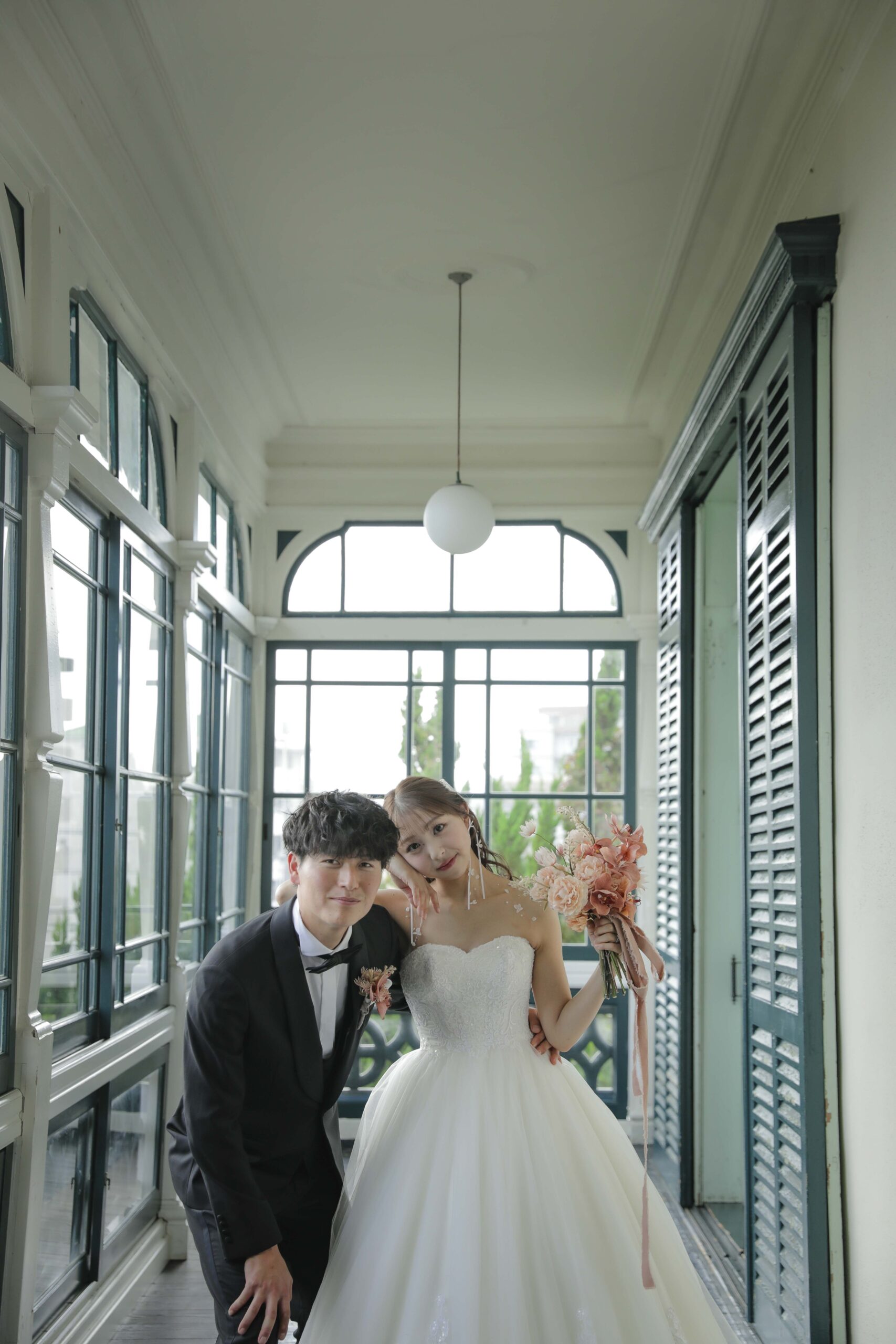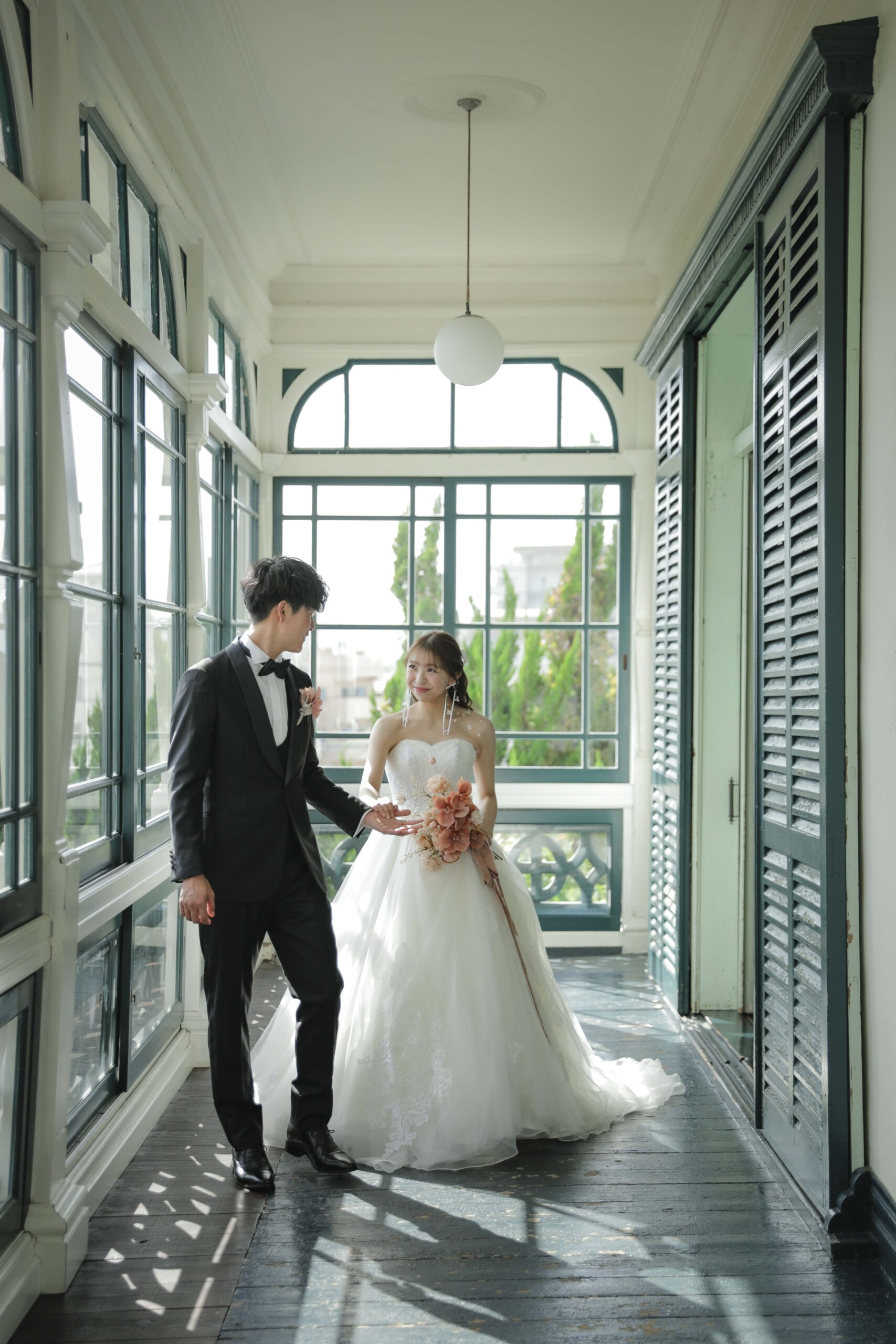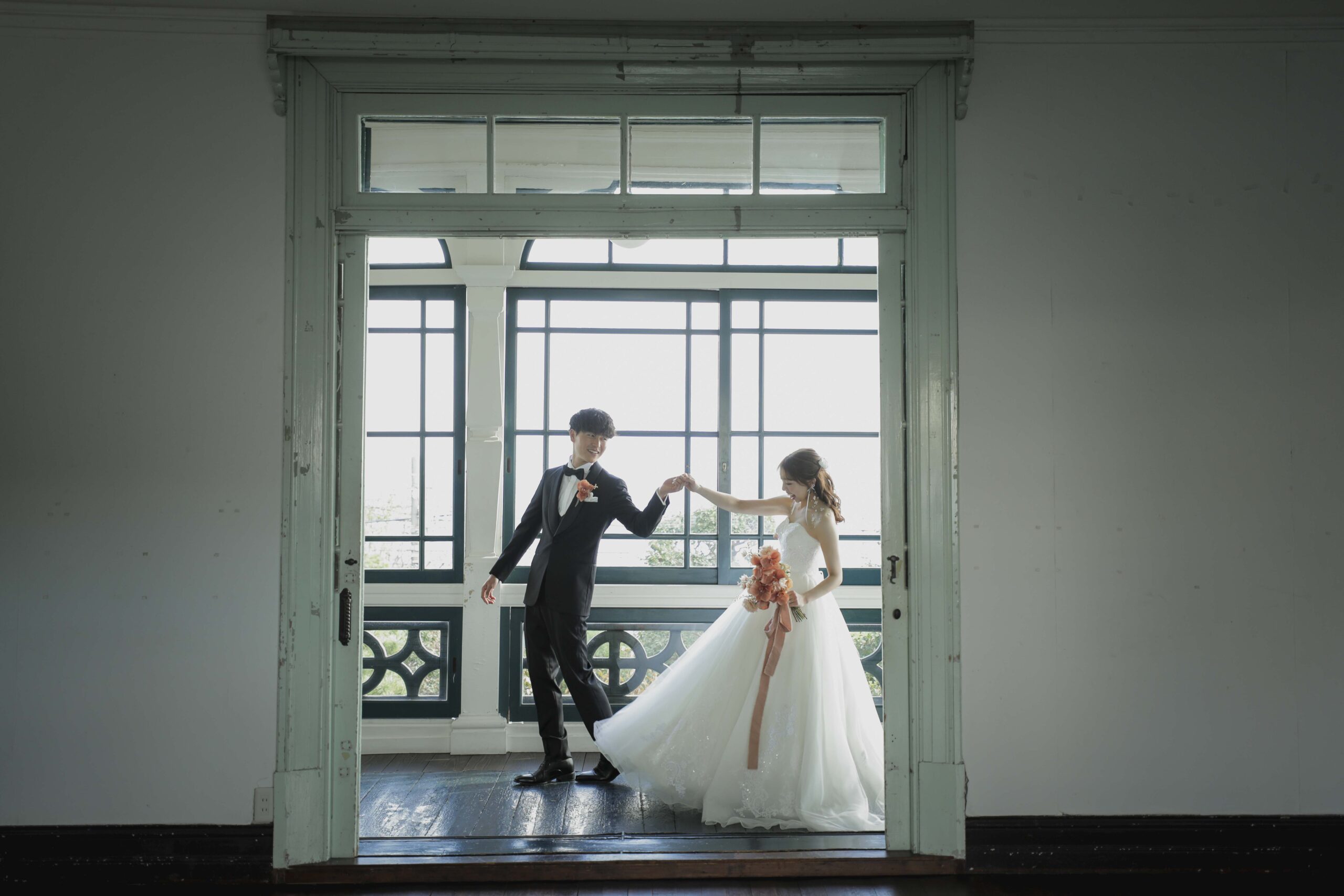 秋の光に包まれた最高のロケーション 旧グッゲンハイム邸を選んだ最大の理由は、どこを切り取っても絵になる圧倒的なロケーションの良さです。ミントグリーンの外観や、木の温もりを感じるクラシックな内装。特に秋の柔らかな陽光が差し込む窓辺は、映画のワンシーンのようなドラマチックな雰囲気を演出してくれました。