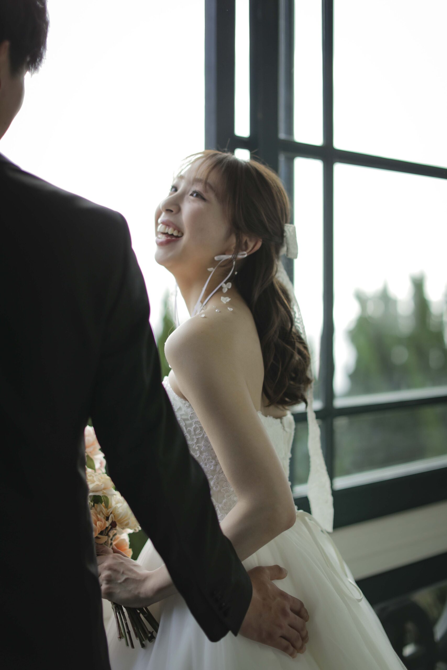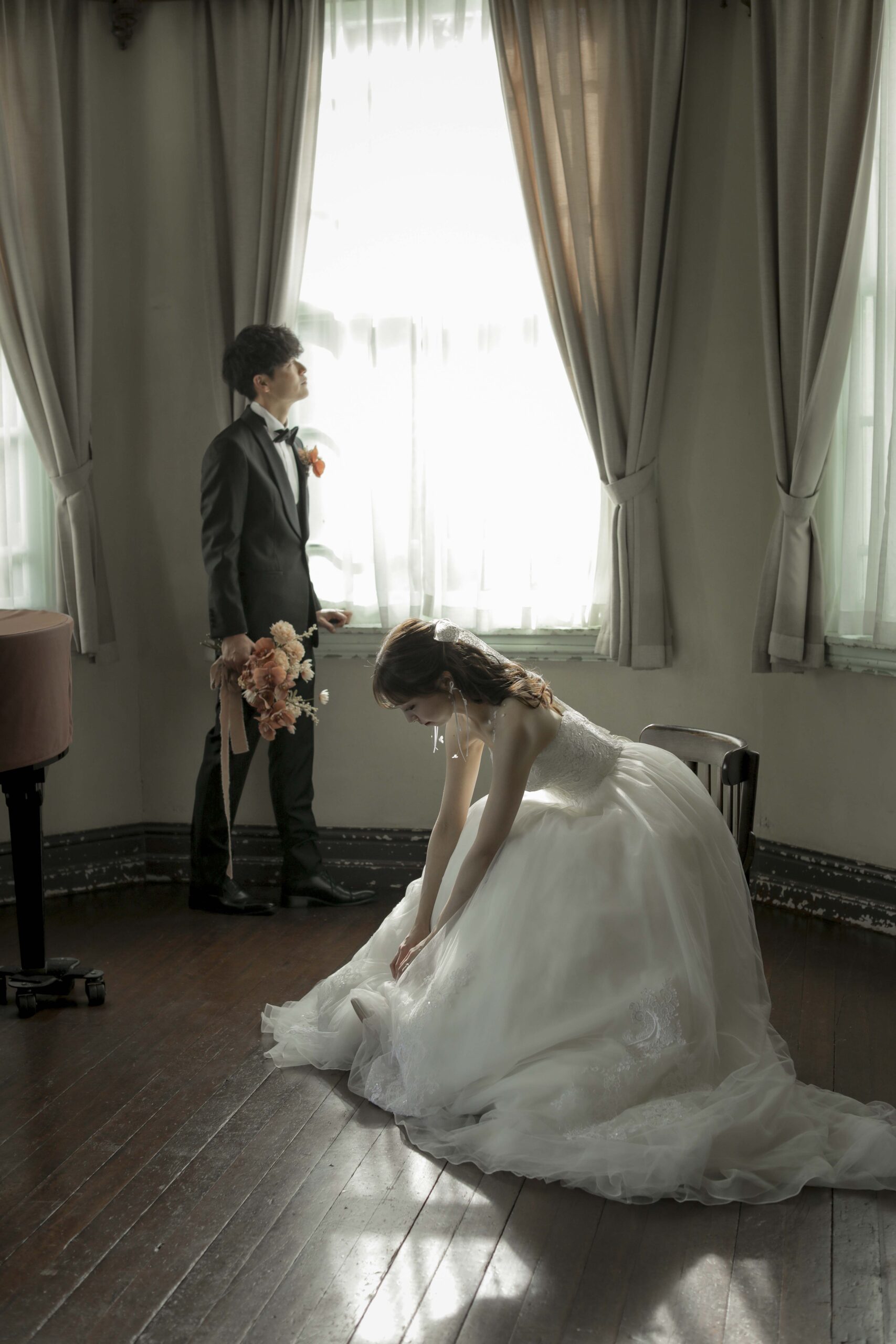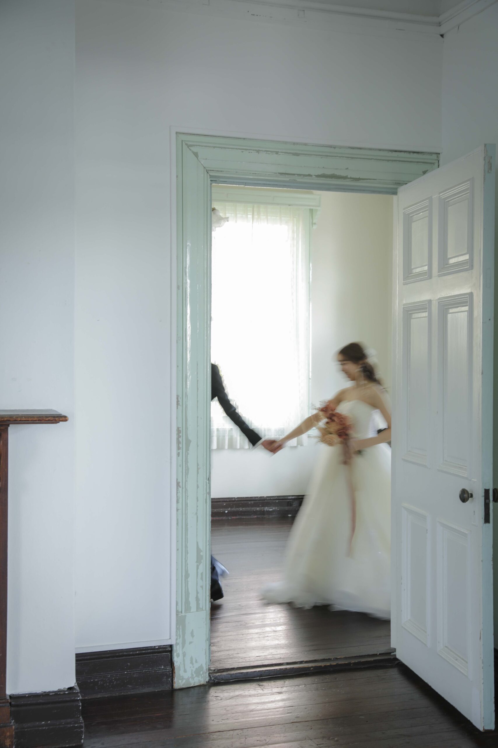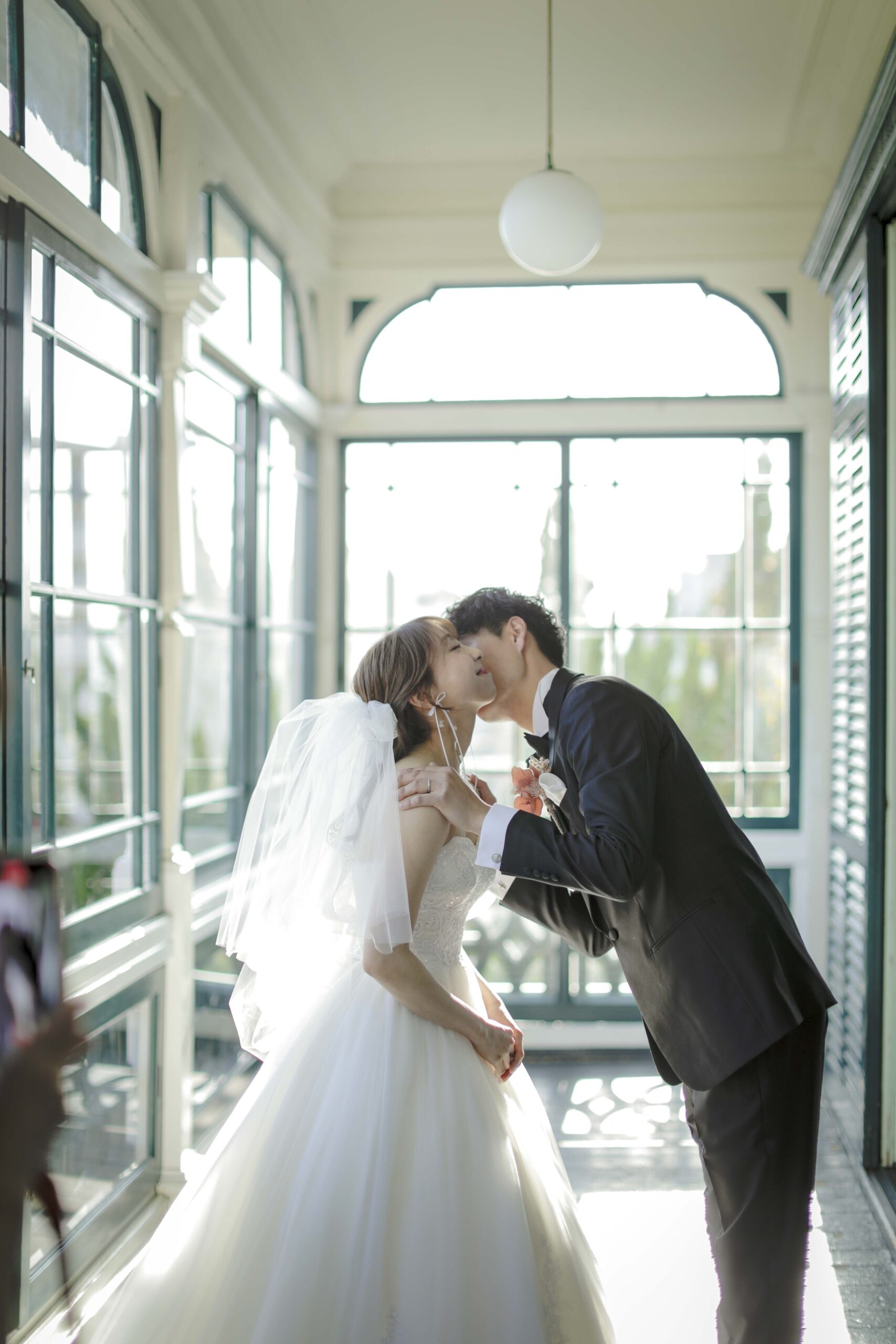 秋の光に包まれた最高のロケーション 旧グッゲンハイム邸を選んだ最大の理由は、どこを切り取っても絵になる圧倒的なロケーションの良さです。ミントグリーンの外観や、木の温もりを感じるクラシックな内装。特に秋の柔らかな陽光が差し込む窓辺は、映画のワンシーンのようなドラマチックな雰囲気を演出してくれました。